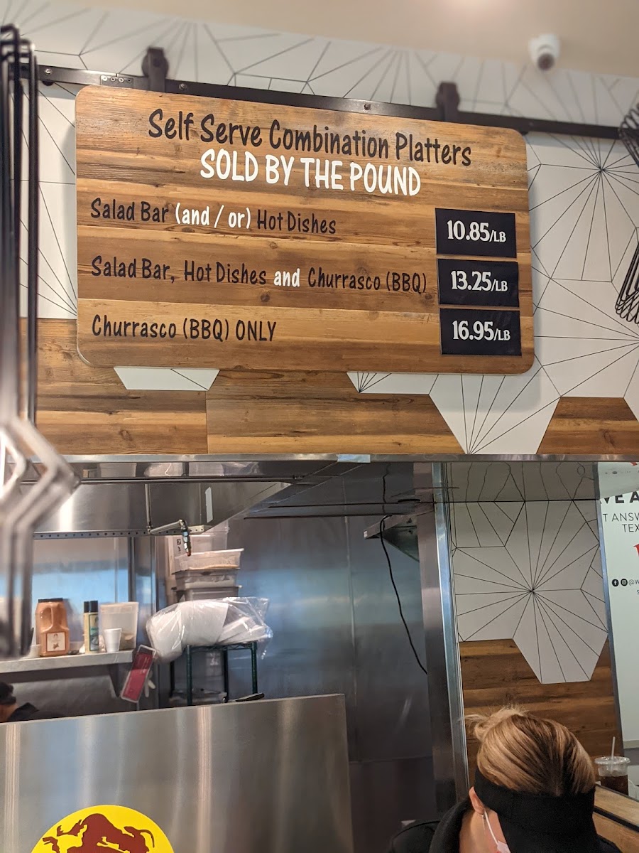 Tender 4 oz Picanha steak with black beans, collard greens, vinaigrette, plantain, farofa, and habanero hot sauce.